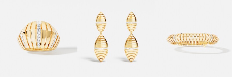 ÉTÉ 系列Rayons de Soleil珠宝作品同样是将南法自然景致幻化为珠宝饰品的唯美设计,灵感源自南法夏日的灿烂光影和棕榈叶剪影,呼应了南法林荫大道的斑驳光影。作品採用大面积镂空金属、闪烁的镶钻和层层堆叠出的线条,交织出十分抢眼的存在感,却又不失优雅质感与南法慵懒风情,最适合混搭极简风造型,让Rayons de Soleil成为焦点,展现自信与风采。